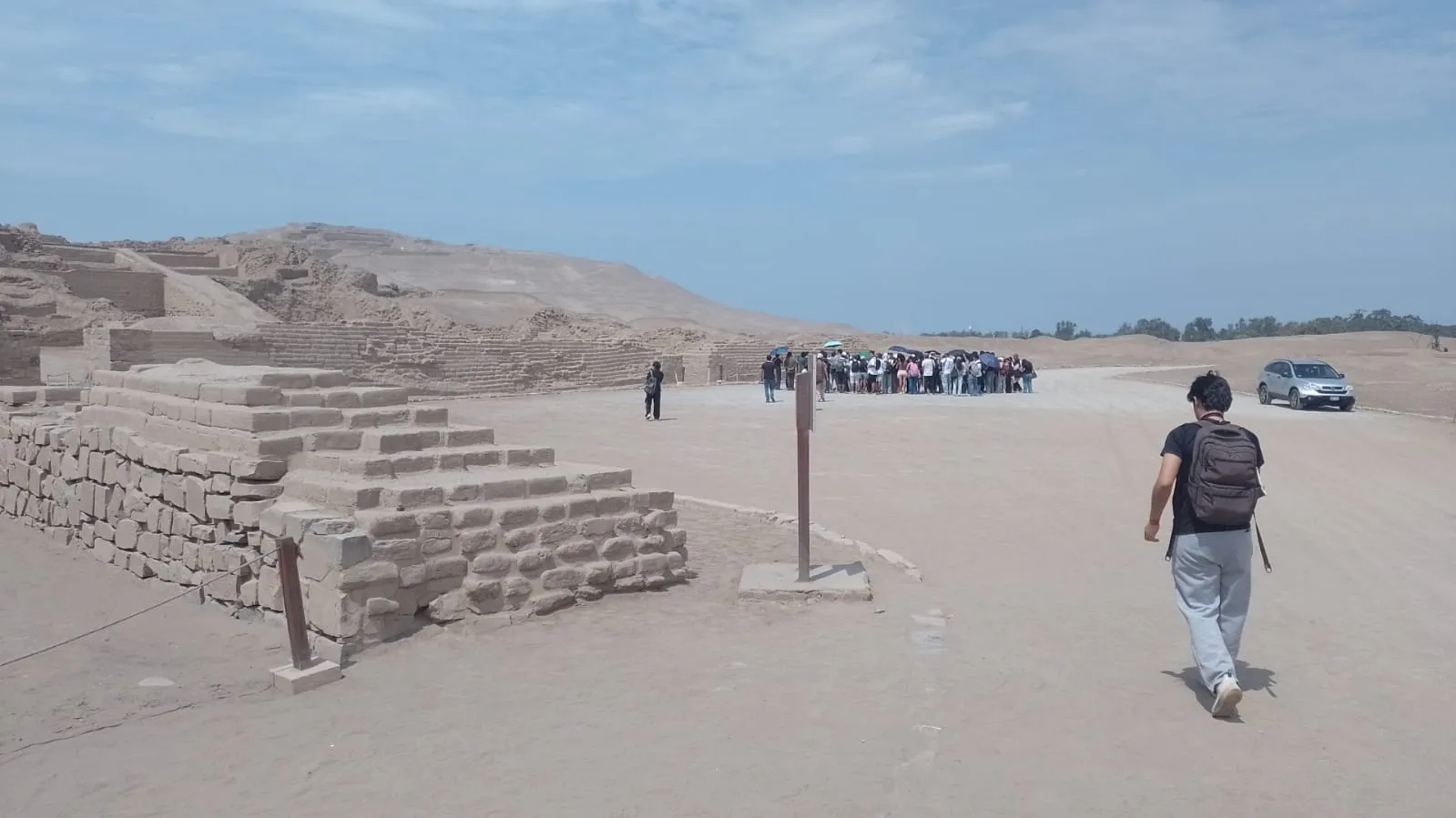 Briefing at the main gate of the archaeological complex.